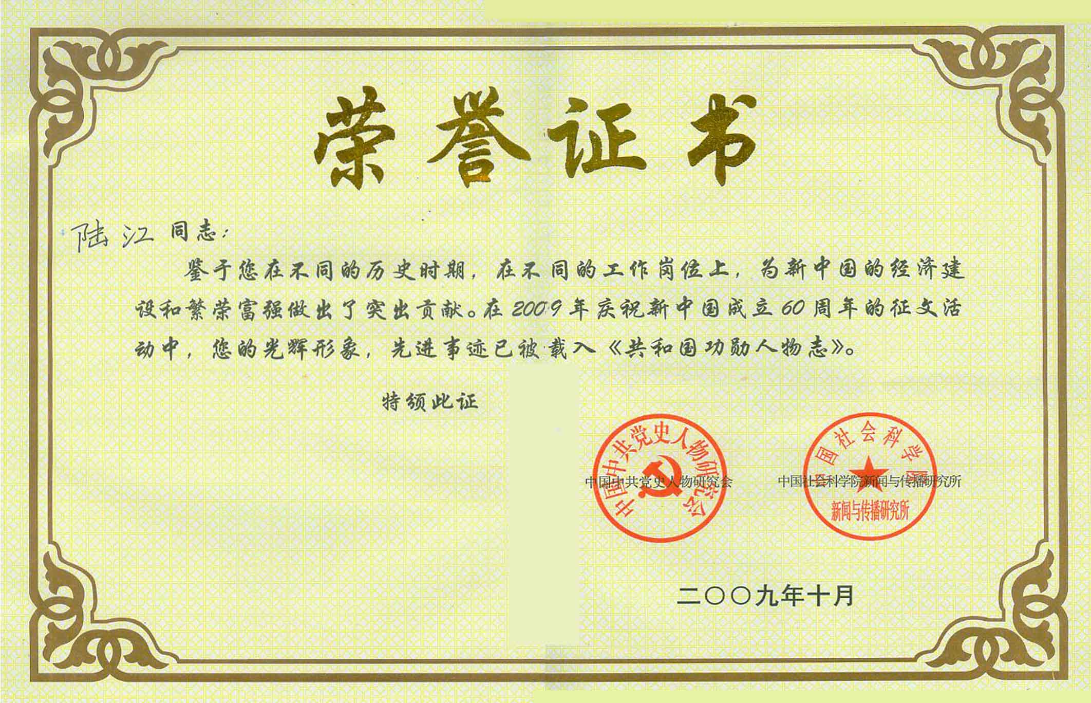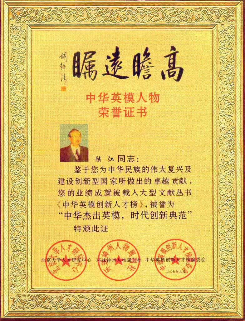 陸江的論文獲一等獎(jiǎng)榮譽(yù)證書-- 陸江論文獲創(chuàng)新論文獎(jiǎng)牌